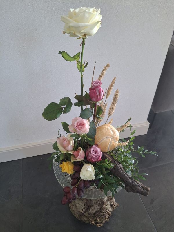 | Lucas 22:14-34 Jezus deelt brood en wijn uit, Aan de tafel van de Heer blikken we niet alleen terug naar wat was het lijden en sterven van Jezus of naar binnen_ ons tekort waardoor dit lijden nodig was , maar ook vooruit. Brood en Wijn als beeld van het feestmaal dat ooit zal zijn. waar geen lichaam gebroken en bloed vergoten wordt, tot aan die dag blijven wij Vieren, Gedenken, Hopen. |